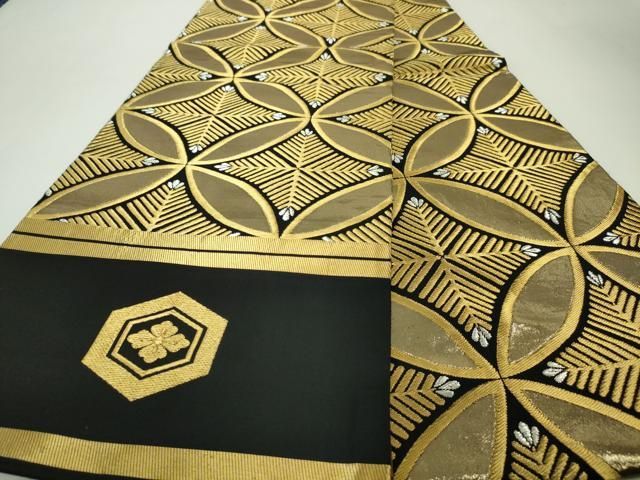 平和屋本店 だらり帯 丸帯 芸姑 舞妓 七宝松葉文 黒地 金糸 DZAA4208kh5 WWW_GLOBALQUALITYIMPORTS_COM