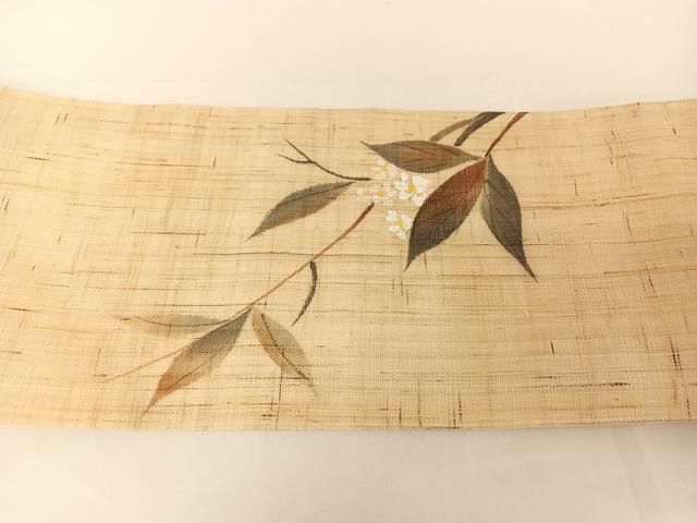 平和屋着物 夏物 九寸名古屋帯 手描き 枝花文 麻 AABA2541np WWW_GLOBALQUALITYIMPORTS_COM