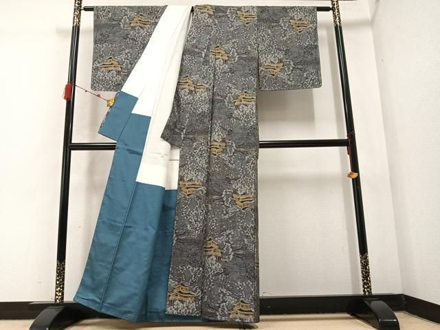 超 正絹 袷 訪問着 着物 164裄67 前田仁仙 深緑 紫 グラデーション