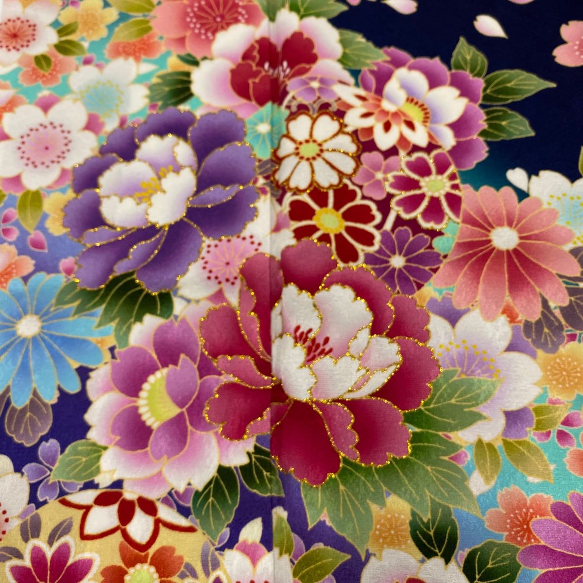振袖 身丈160.5cm 裄丈68cm L 袷 手鞠 牡丹 ラメ ぼかし 濃紺 正絹 WWW_GLOBALQUALITYIMPORTS_COM