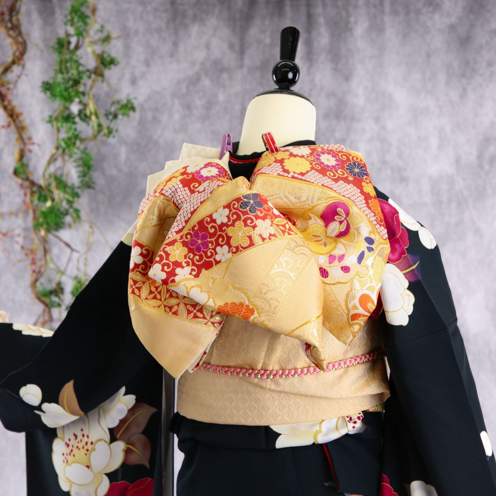 振袖フルセット 振袖セット 振袖 LLサイズ 黒×レトロ 成人式 着物 晴れ着 7点フルセット F-449の検索結果