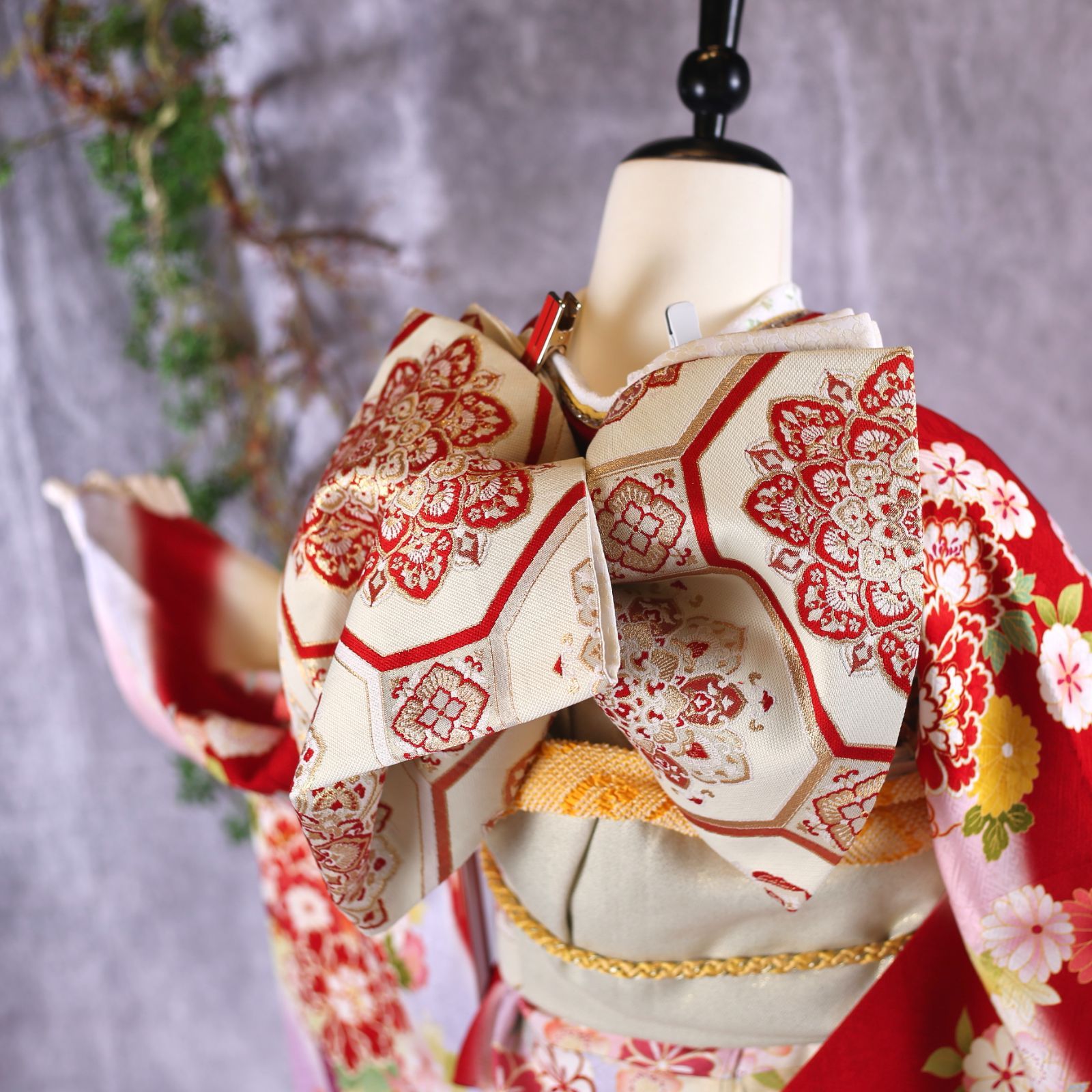 振袖フルセット 振袖セット 振袖 Mサイズ 赤×古典柄 成人式 着物 晴れ着 7点フルセット F-94の検索結果