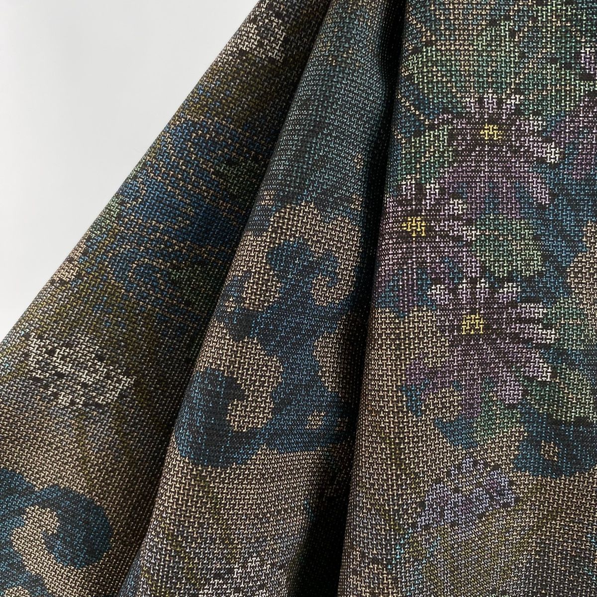 紬 身丈157cm 裄丈65.5cm M 袷 やまと 草花 流水 青緑 正絹 WWW_GLOBALQUALITYIMPORTS_COM