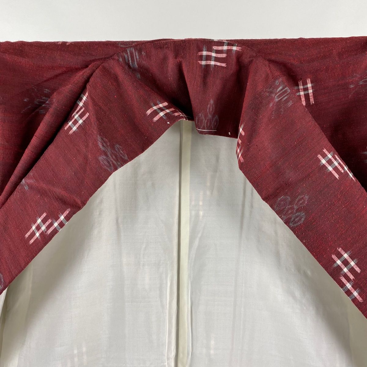 紬 身丈160cm 裄丈63cm S 袷 琉球本紬 証紙 井桁絣 幾何学 えんじ色 正絹の検索結果