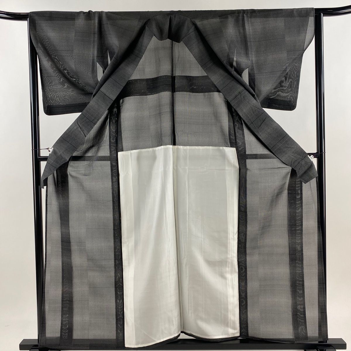 紬 身丈162.5cm 裄丈65cm M 薄物 夏紬 縞 幾何学模様 黒灰 正絹 秀品の検索結果