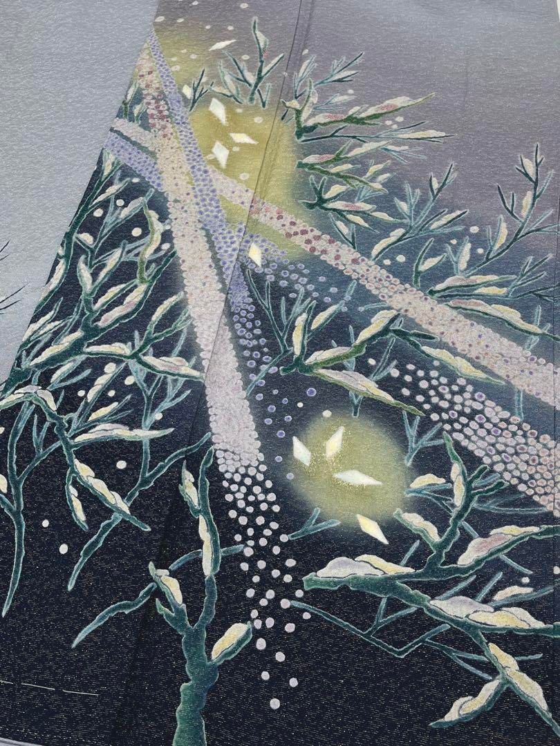 絞り染め 手刺繍 幻想的 訪問着 金通し 雪景色 正絹 躾糸付き WWW_GLOBALQUALITYIMPORTS_COM