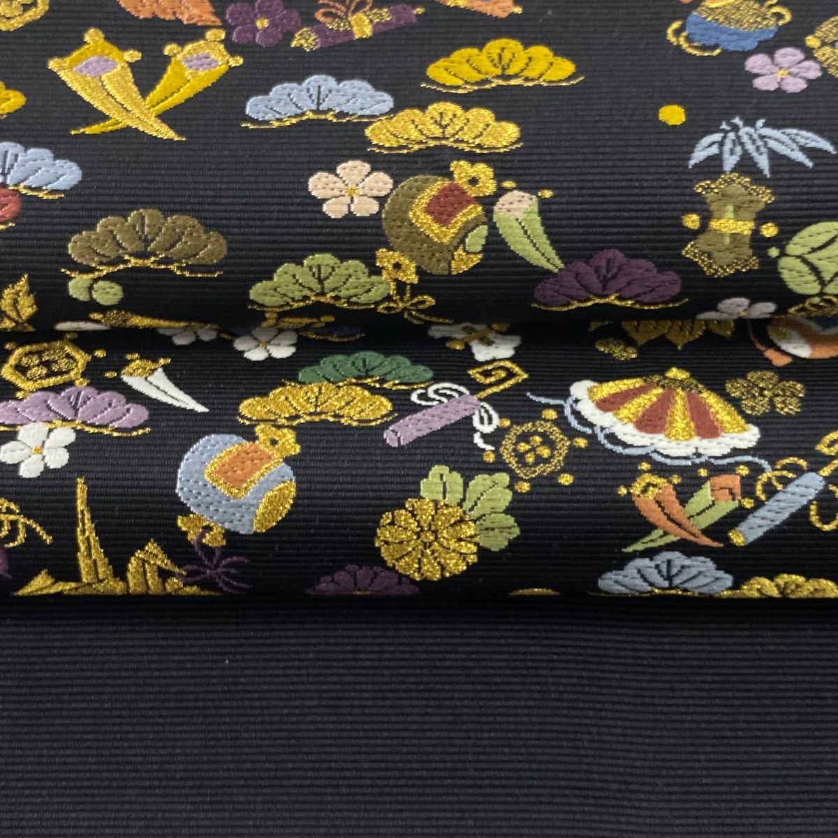 袋帯 宝尽くし小袖 松竹梅 折鶴 唐織 金糸 黒 六通 正絹 WWW_GLOBALQUALITYIMPORTS_COM