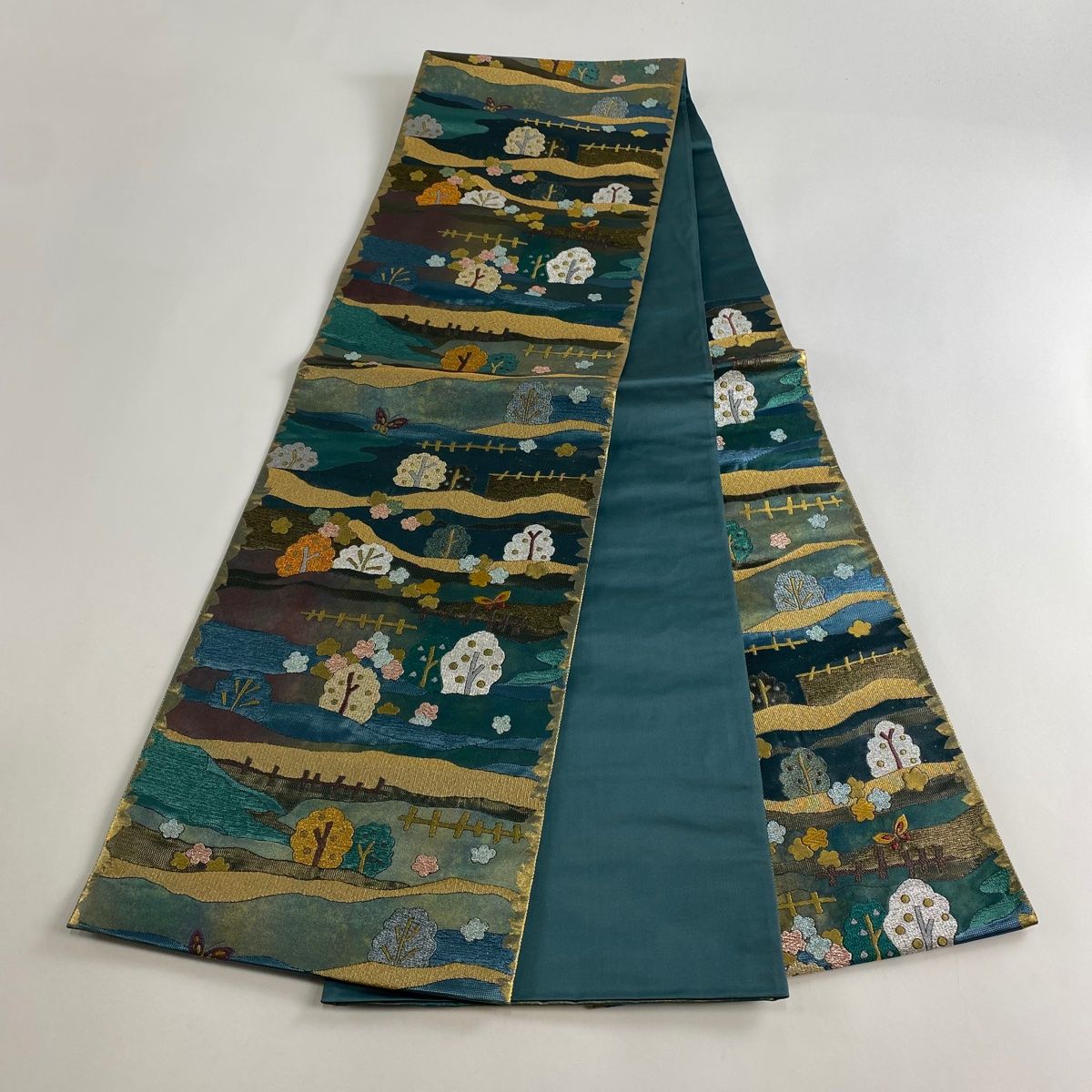 袋帯 引箔袋 星降る里 樹木 蝶 金糸 箔 緑 六通 正絹 WWW_GLOBALQUALITYIMPORTS_COM