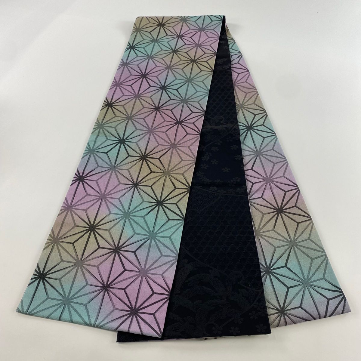 袋帯 斉藤三才 落款 麻の葉 染め分け ぼかし 紫 全通 正絹 WWW_GLOBALQUALITYIMPORTS_COM