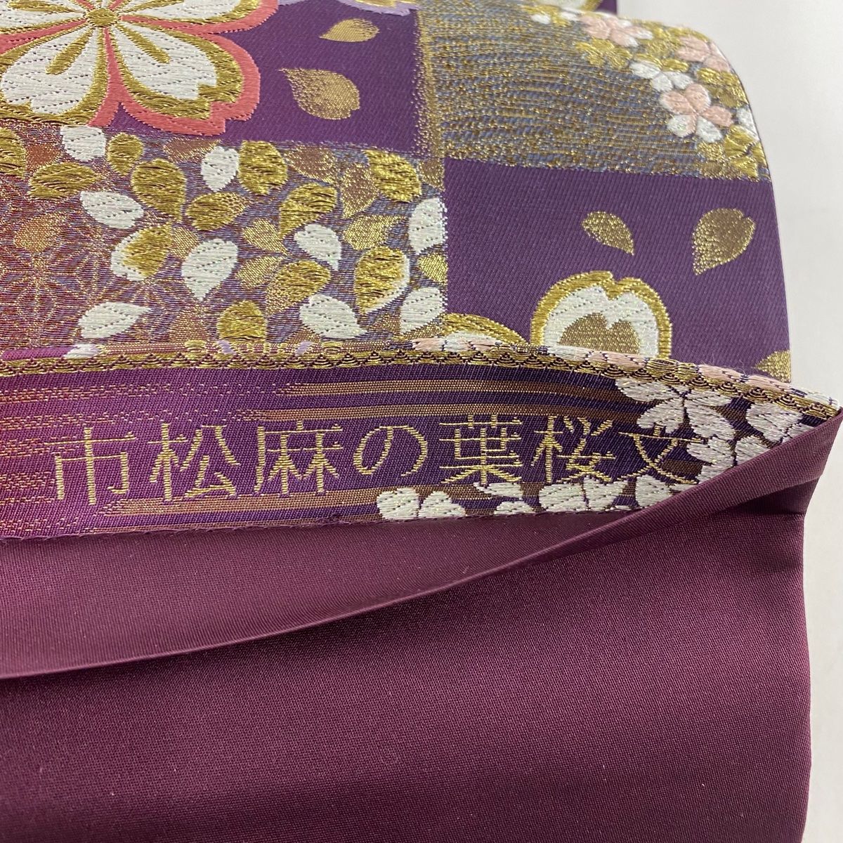 袋帯 秀品 市松麻の葉桜文 紫 六通 正絹の検索結果