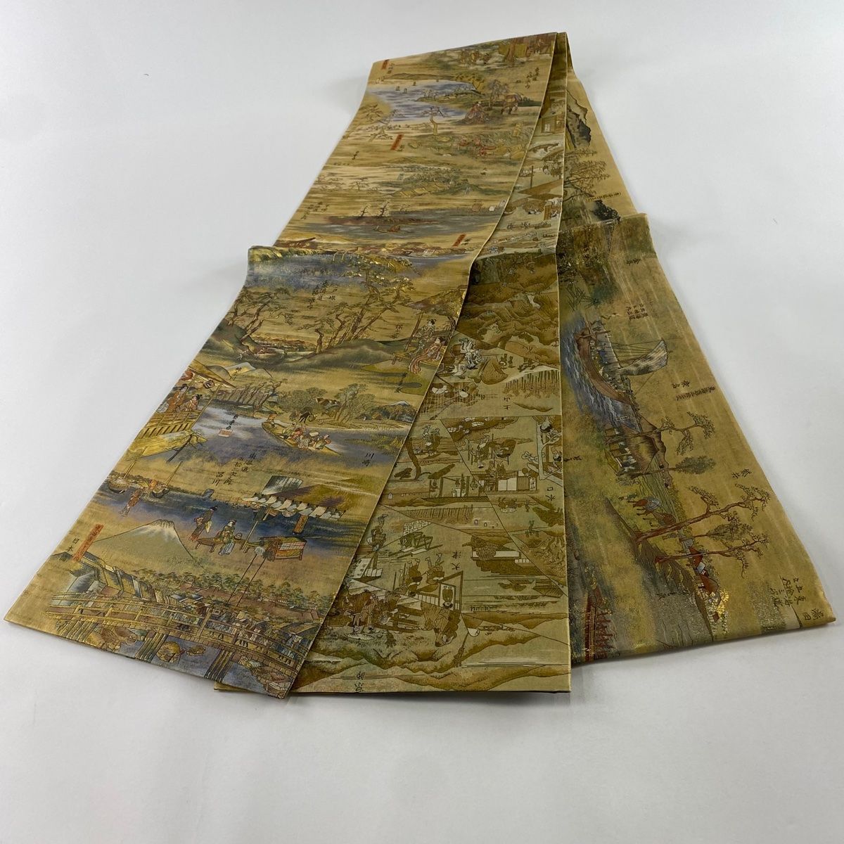 袋帯 秀品 廣重 風景 東海道五十三次 箔 黄土色 お太鼓柄 正絹 WWW_GLOBALQUALITYIMPORTS_COM