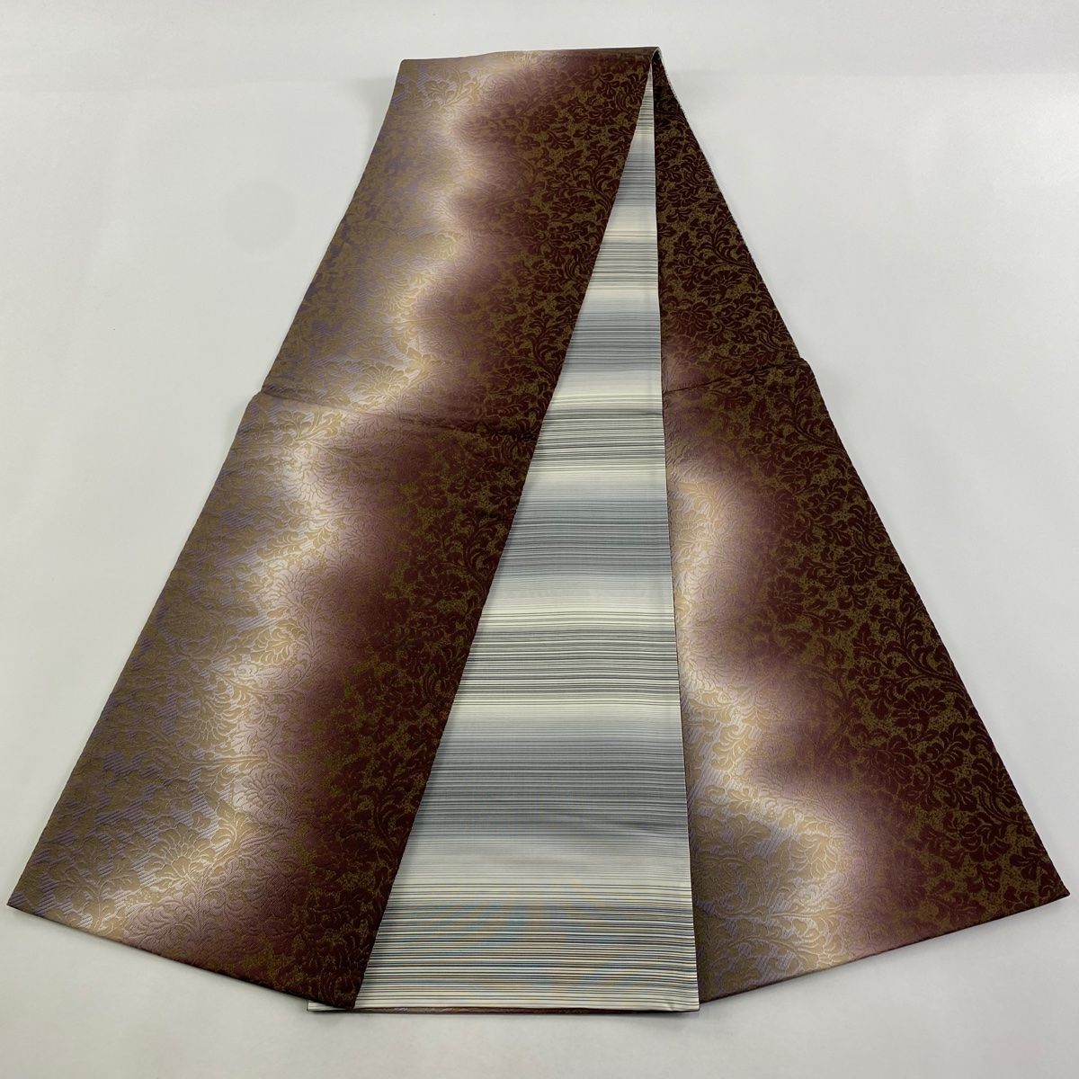 袋帯 花唐草 斜縞 金糸 赤紫 全通 正絹の検索結果