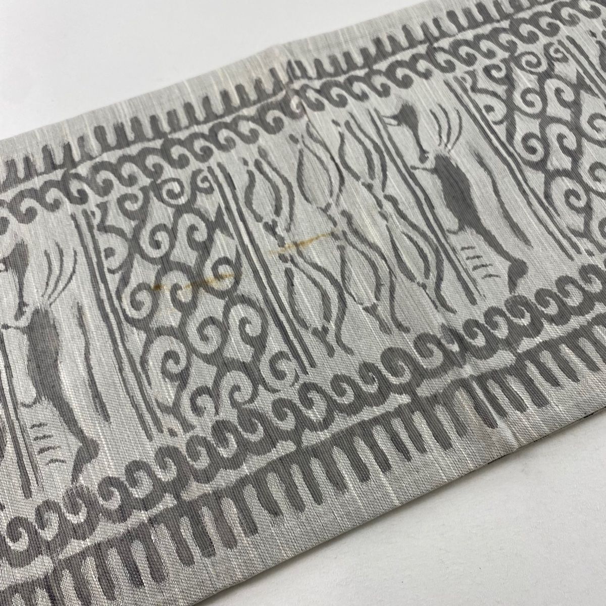 袋帯 蚕麗小石丸 動物 幾何学 灰色 お太鼓柄 正絹 WWW_GLOBALQUALITYIMPORTS_COM