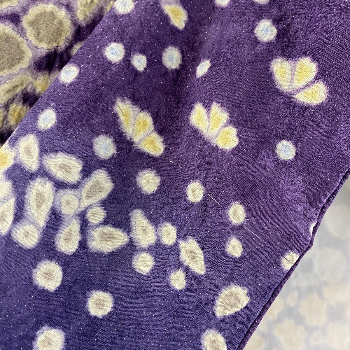 訪問着 身丈157cm 裄丈65cm M 袷 草花 波 銀通し 絞り 紫 正絹 WWW_GLOBALQUALITYIMPORTS_COM