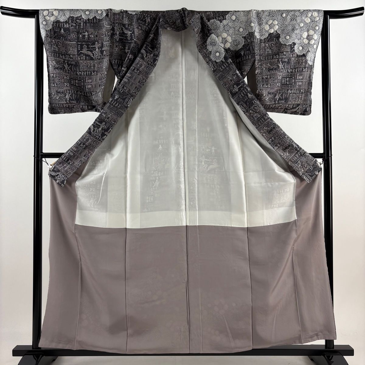 訪問着 身丈160.5cm 裄丈63.5cm S 袷 紬地 狩猟文 草花 絞り 灰紫 正絹 秀品の検索結果