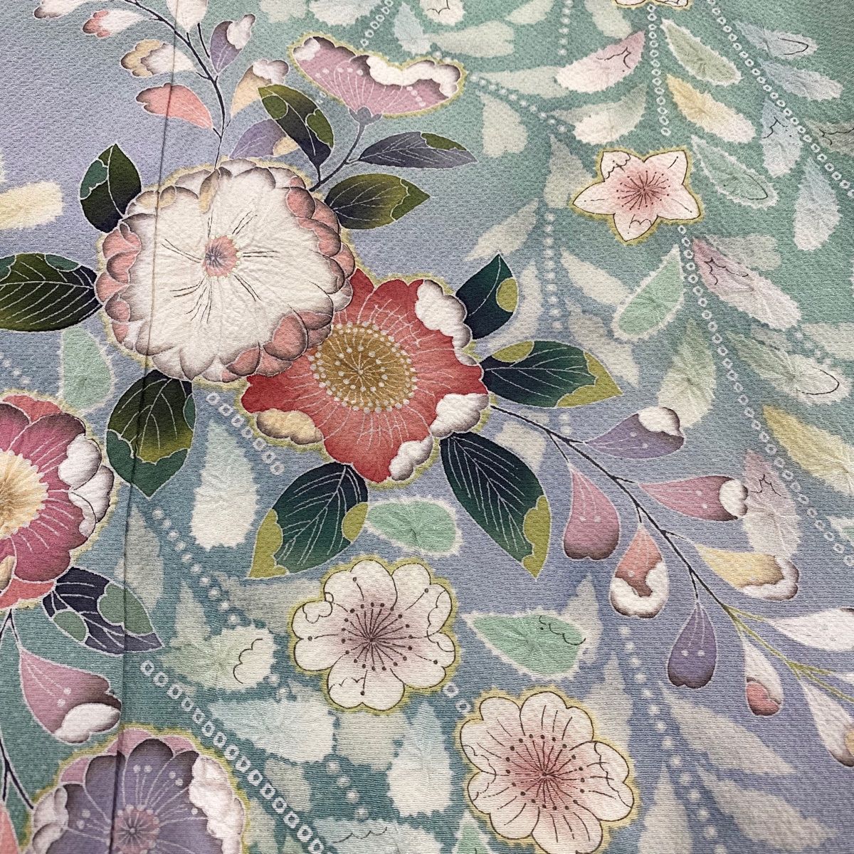 訪問着 身丈162cm 裄丈63cm S 袷 草花 絞り ぼかし 薄緑 正絹の検索結果