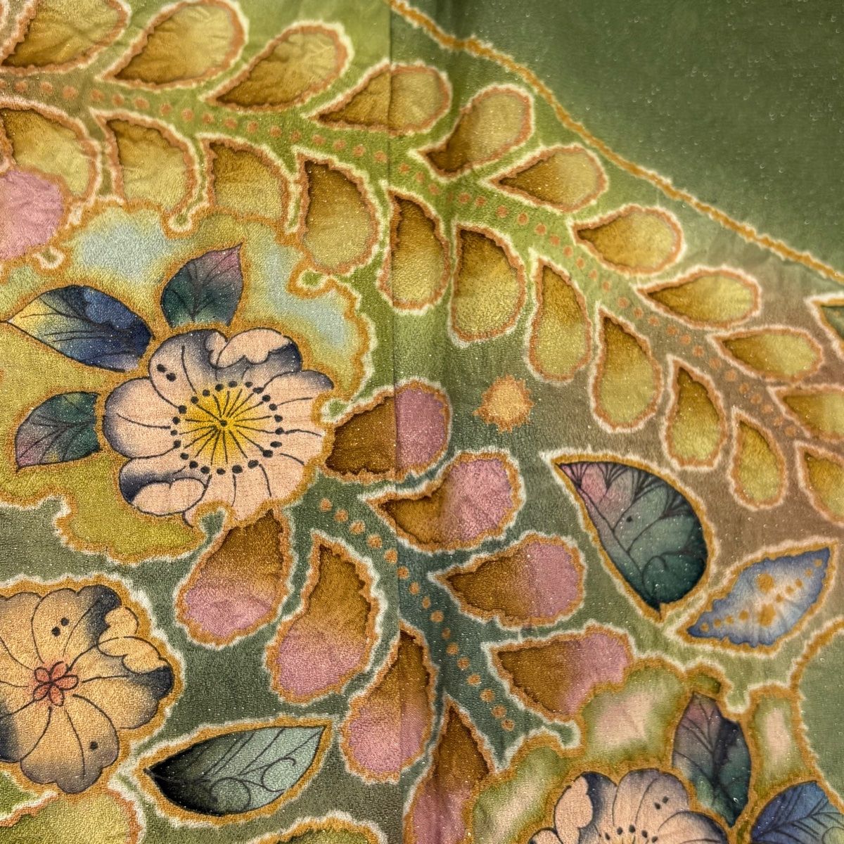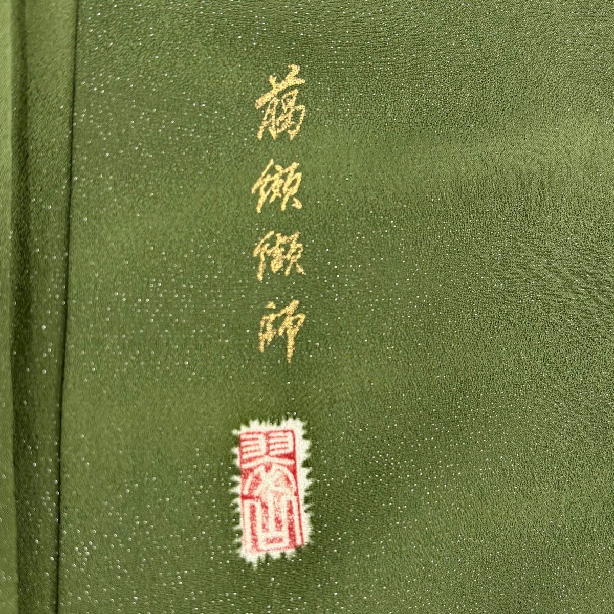 訪問着 身丈163cm 裄丈66cm M 袷 翠山工房 落款 辻が花 銀通し ぼかし 深緑 正絹の検索結果