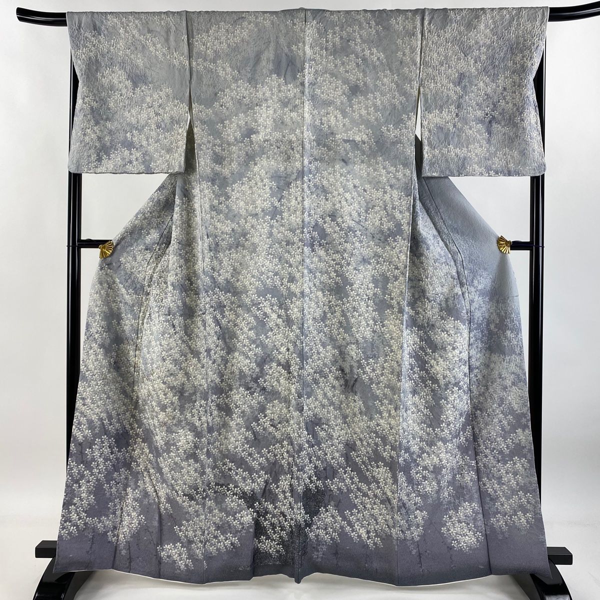 訪問着 身丈164.5cm 裄丈67cm M 袷 袋帯セット 桜 霞 銀通し 刺繍 灰色 正絹 WWW_GLOBALQUALITYIMPORTS_COM