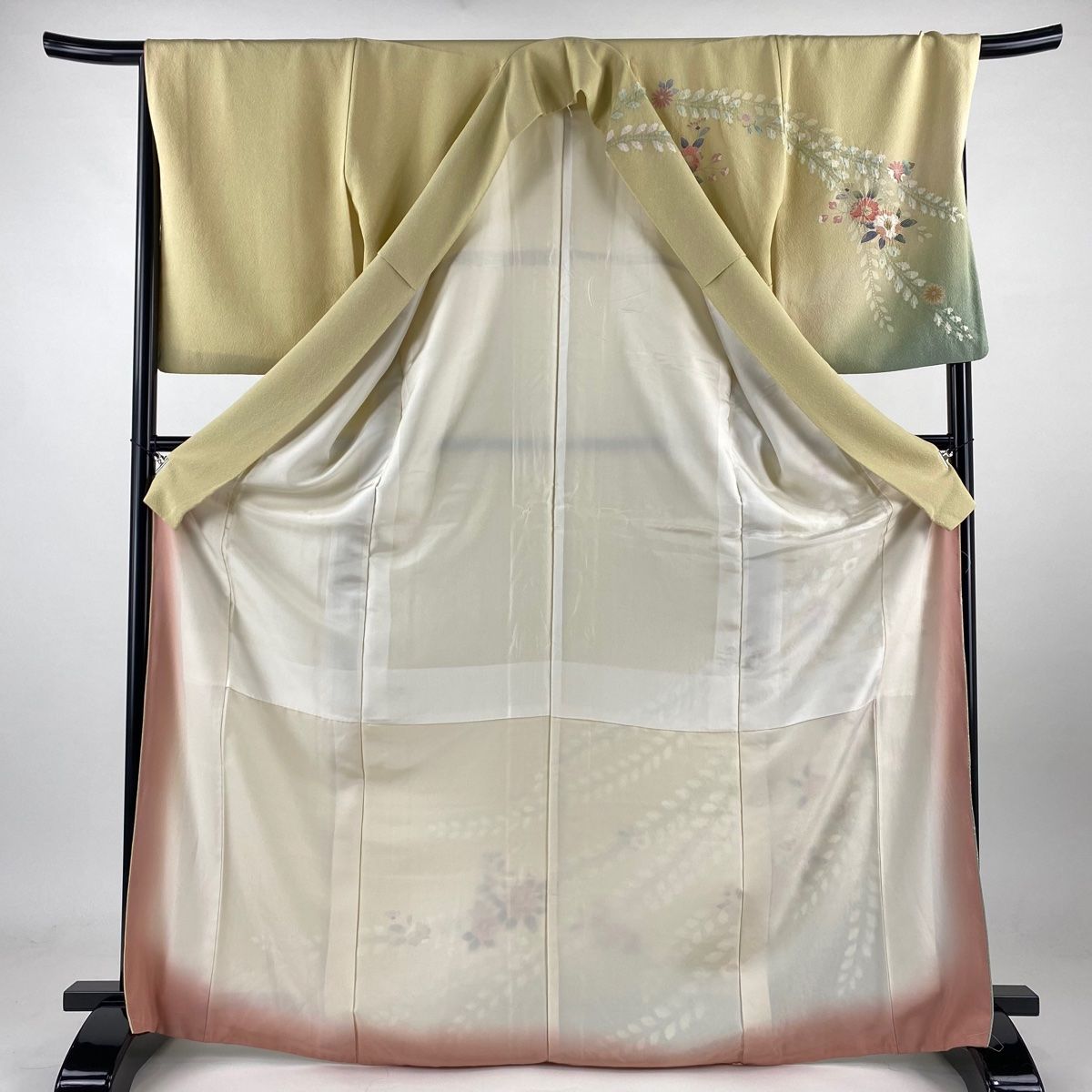 訪問着 身丈170.5cm 裄丈67.5cm L 袷 草花 流水 絞り ぼかし ベージュ 正絹の検索結果