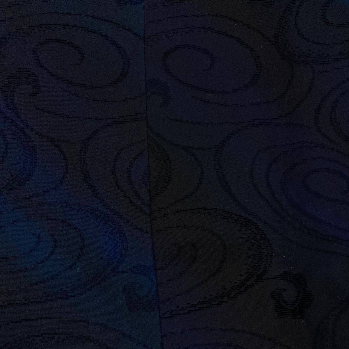 道行 身丈122cm 裄丈65.5cm M 和装コート 角衿 渦巻き 斜めぼかし 青黒 正絹の検索結果