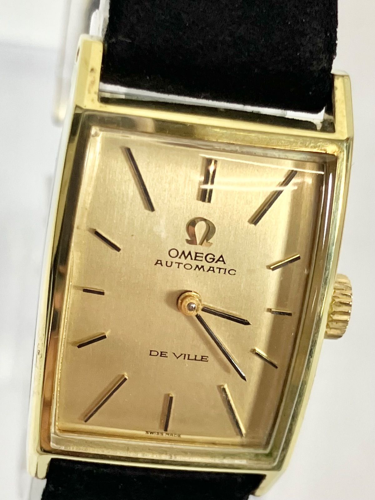 B-47 稼動品 OMEGA オメガ DE VILLE デビル 自動巻き 腕時計 アナログ腕時計 時計 ブランドロゴ ゴールド 文字盤 スクエア ベロアベルト レディース 保管ケース付 WWW_GLOBALQUALITYIMPORTS_COM