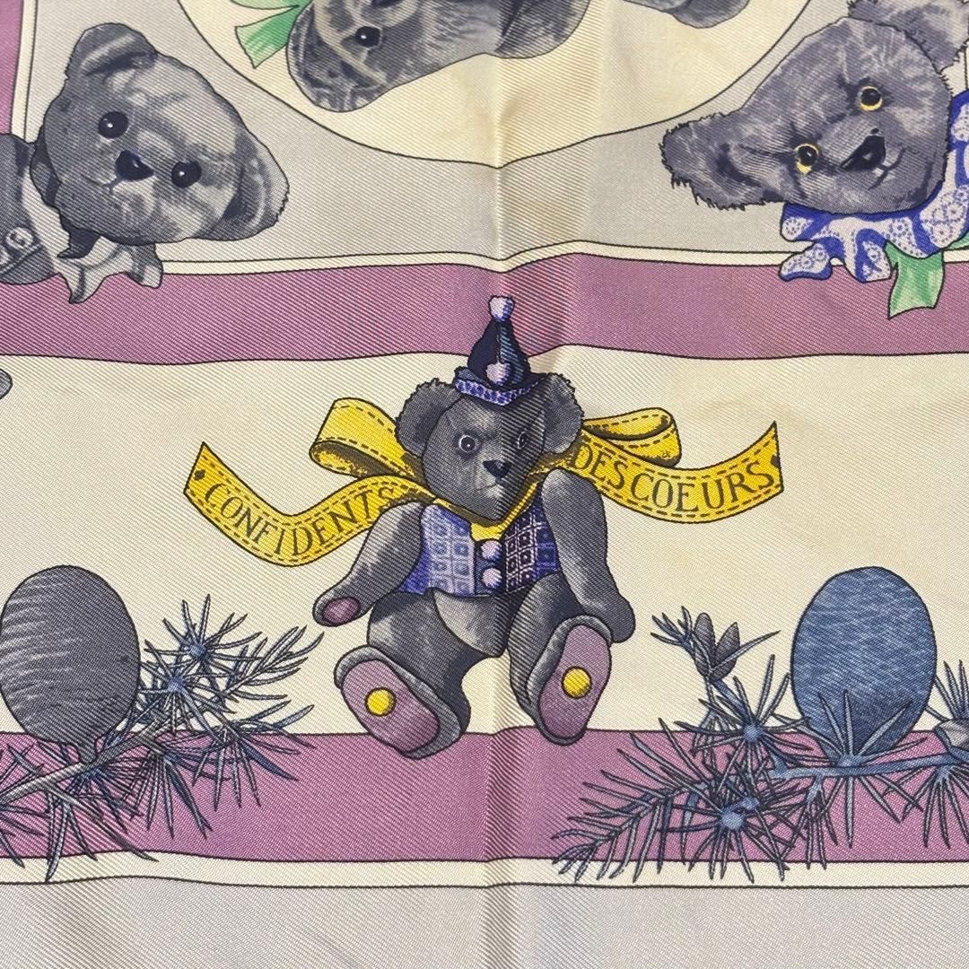 HERMES エルメス CONFIDENTS DESCOEURS 心の友 テディベア スカーフ カレ 45 シルク クマ 熊 動物柄 WWW_GLOBALQUALITYIMPORTS_COM
