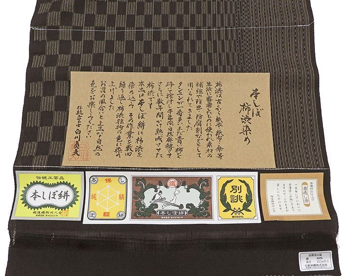 お召し 正絹 伝統工芸士 白川貞夫 白新染織謹製 本しぼ絣 柿渋染め 市松 縞 紬 反物 着物 未仕立 d2030の検索結果