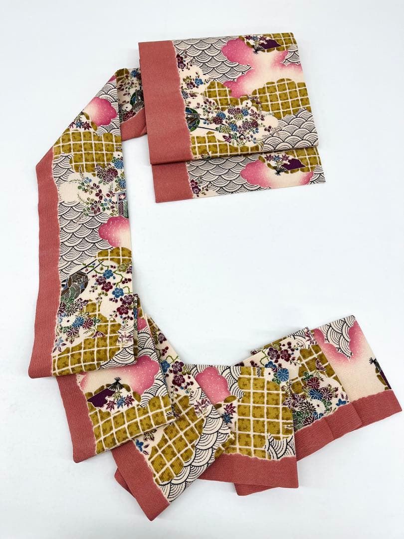 京都 摺型友禅 多ち花 九寸名古屋帯 ちりめん 正絹 WWW_GLOBALQUALITYIMPORTS_COM