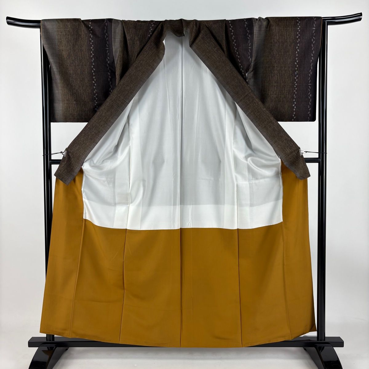 大島紬 身丈159.5cm 裄丈67.5cm L 袷 純泥染 証紙 花びら 幾何学模様 焦茶色 正絹 WWW_GLOBALQUALITYIMPORTS_COM