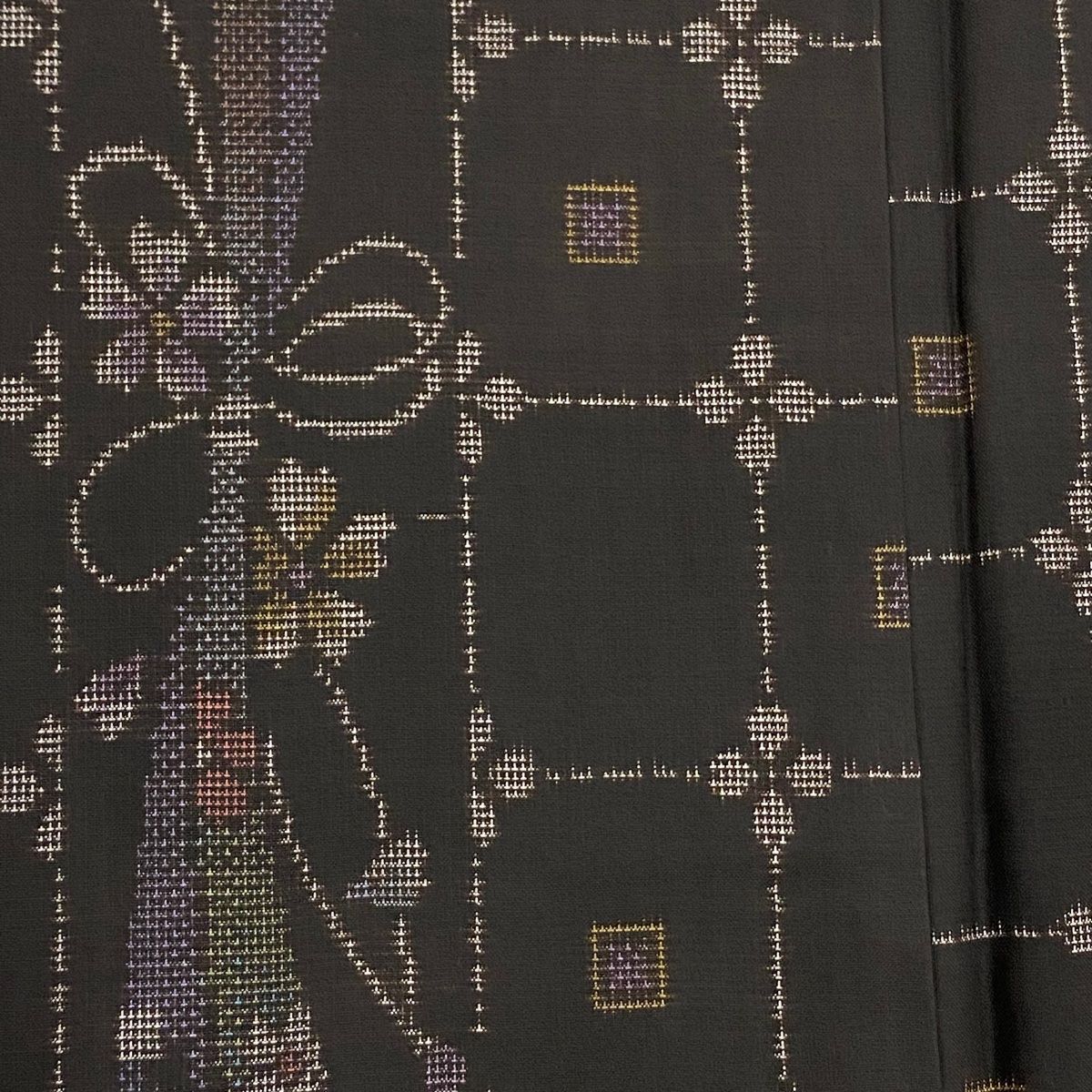 大島紬 身丈163cm 裄丈68cm L 袷 純泥染 やまと 証紙 格子 桜 墨色 正絹 WWW_GLOBALQUALITYIMPORTS_COM