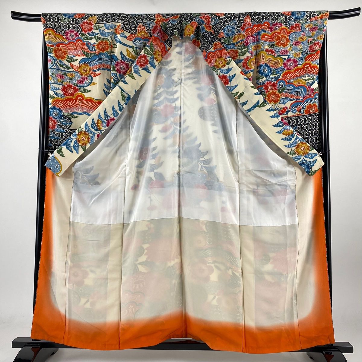 振袖 身丈159cm 裄丈67cm M 袷 草花 ヱ霞 縮緬 クリーム 正絹 WWW_GLOBALQUALITYIMPORTS_COM