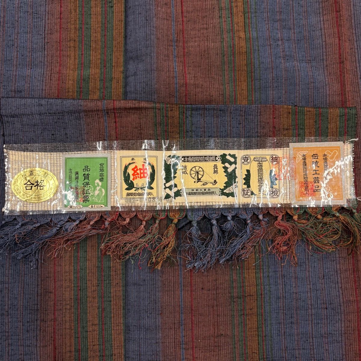 紬 身丈159cm 裄丈65cm M 袷 証紙 縦縞 紺色 正絹 秀品 WWW_GLOBALQUALITYIMPORTS_COM