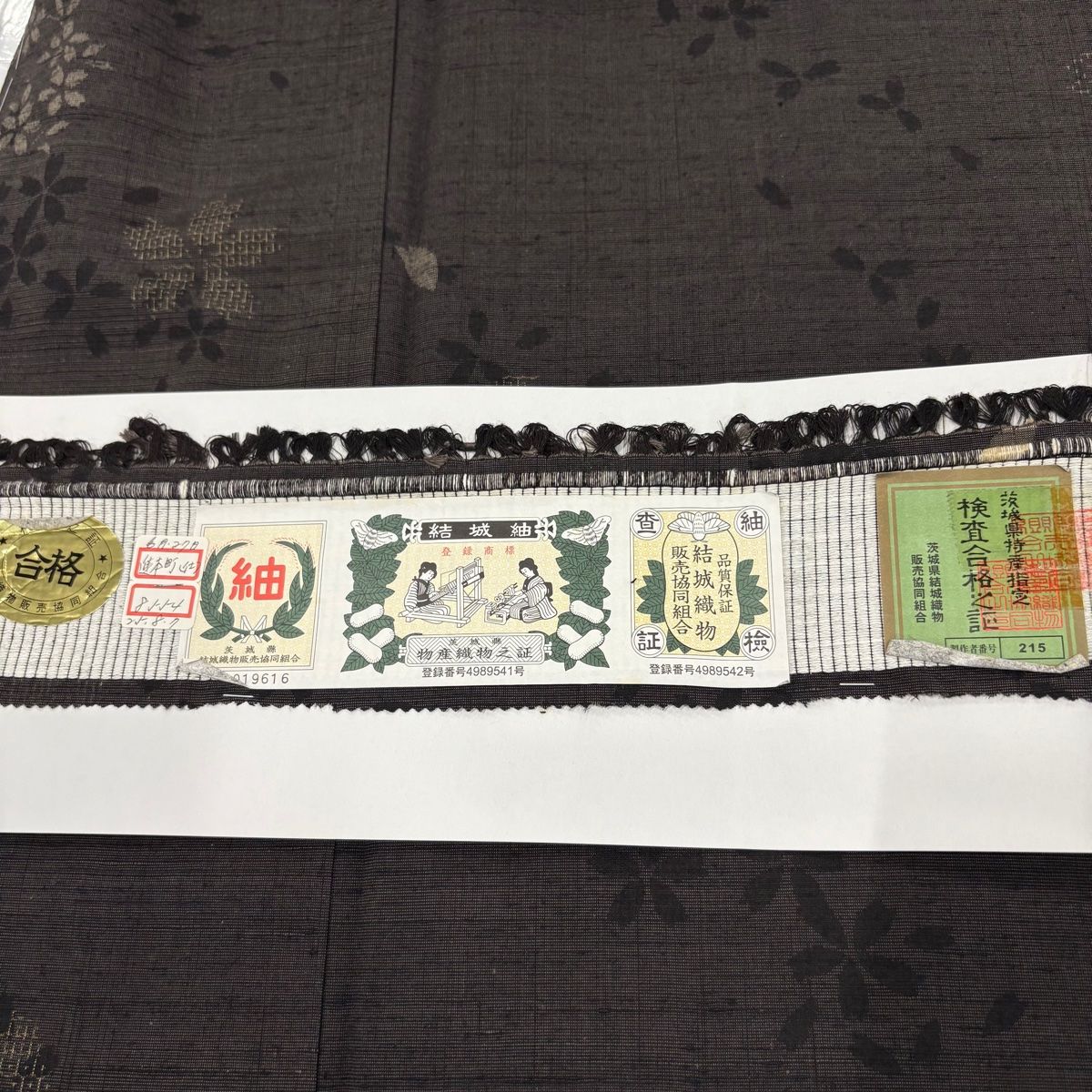 結城紬 身丈165.5cm 裄丈64.5cm M 袷 証紙 桜 花びら 焦茶色 正絹 WWW_GLOBALQUALITYIMPORTS_COM