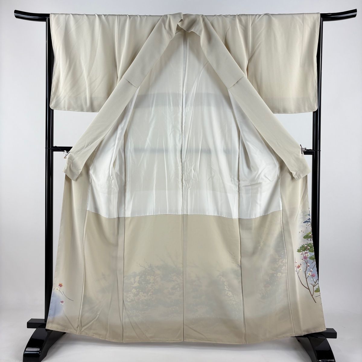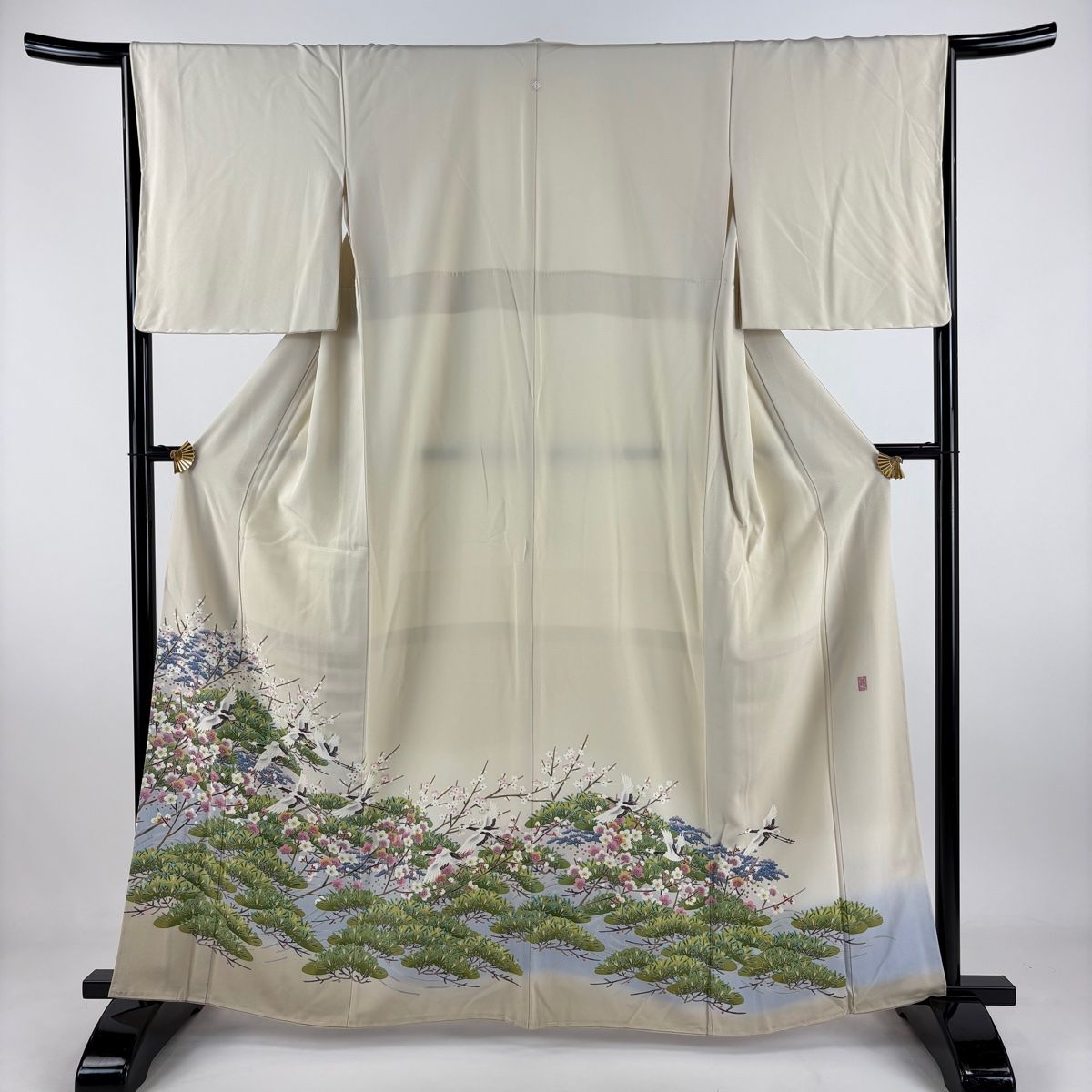 色留袖 身丈162.5cm 裄丈65cm M 袷 袋帯セット 濱田泰史 加賀友禅 落款 証紙 鶴 松梅 クリーム 正絹 一つ紋 WWW_GLOBALQUALITYIMPORTS_COM