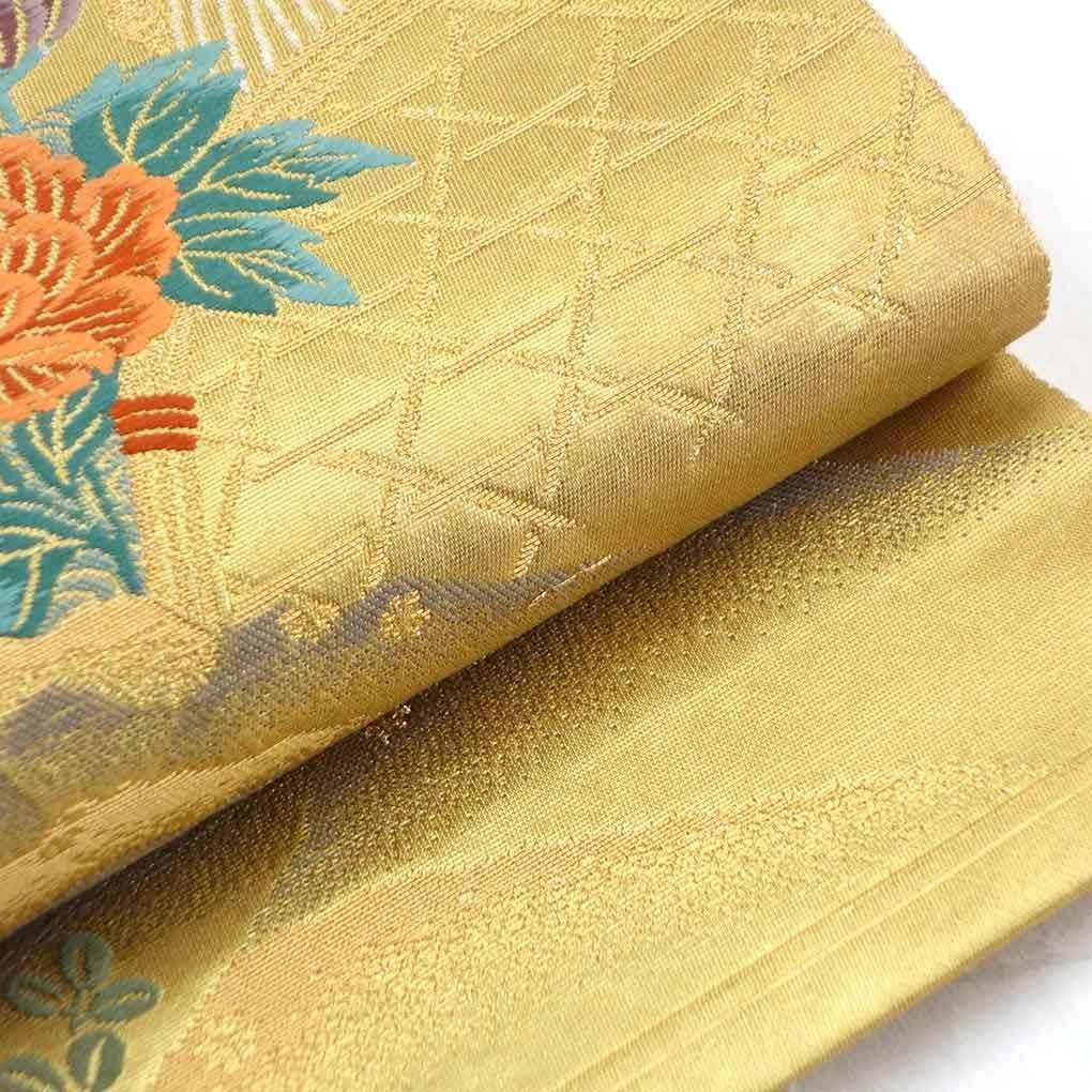 袋帯 幅31cm 長さ430cm レディース 風景画 秋冬春用 正絹 シルク ゴールド リメイク リユース リサイクル 呉服のきくや WWW_GLOBALQUALITYIMPORTS_COM