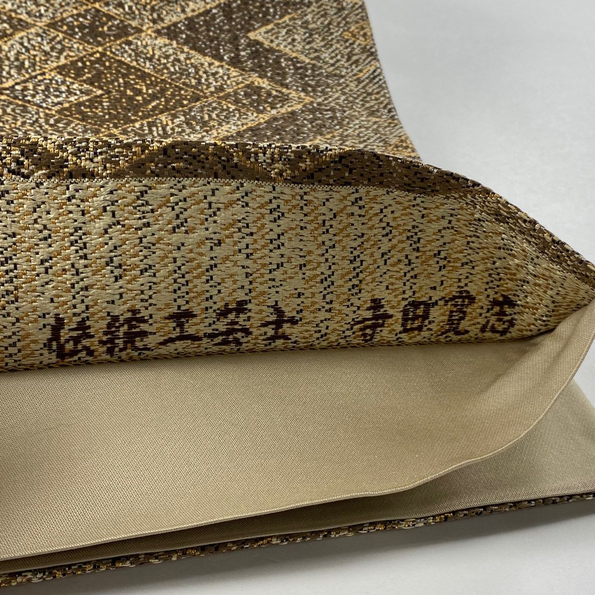 袋帯 秀品 落款 伝統工芸士 寺田寛志 全通泥染 幾何学 菱 金糸 灰茶 全通 正絹の検索結果