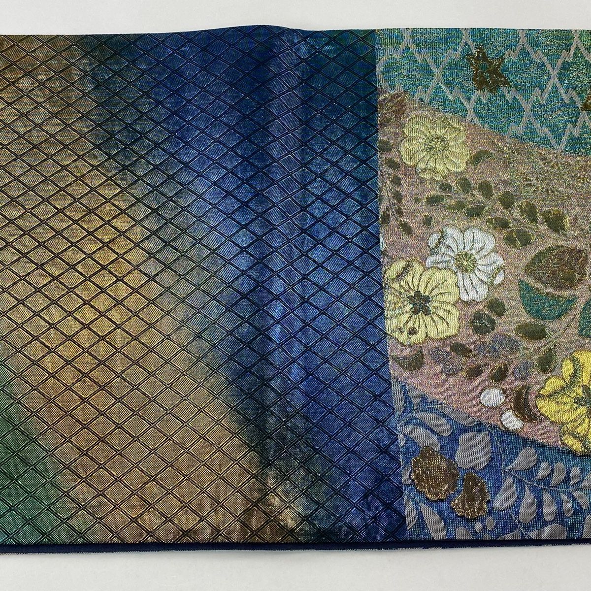 袋帯 秀品 辻が花柄 松皮菱 金糸 箔 青緑 六通 正絹 WWW_GLOBALQUALITYIMPORTS_COM