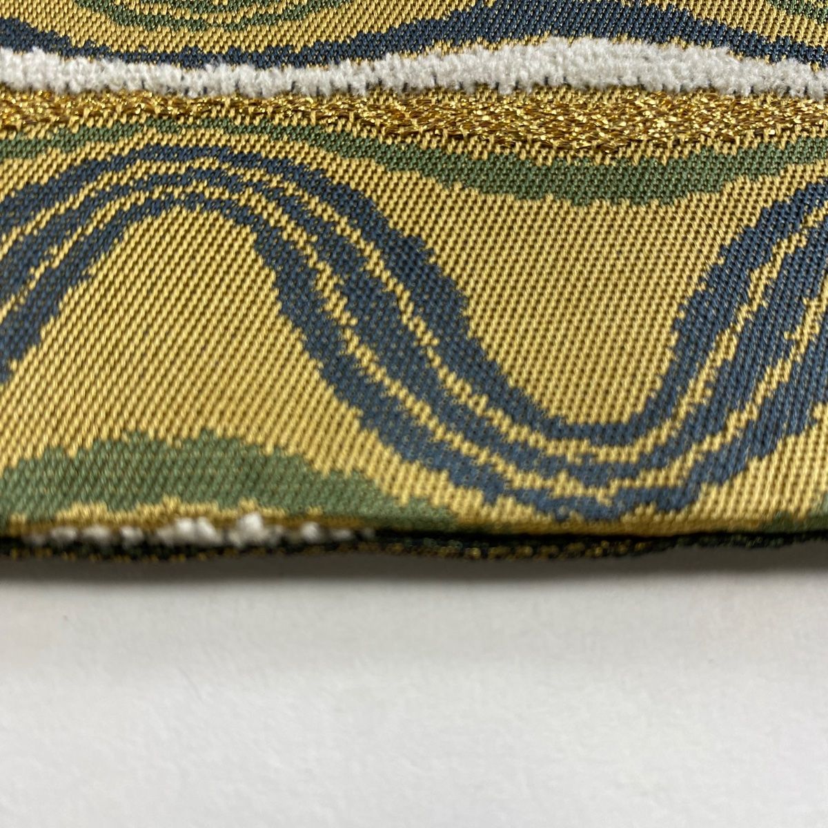袋帯 縞 よろけ縞 箔 薄黄土色 お太鼓柄 正絹 WWW_GLOBALQUALITYIMPORTS_COM
