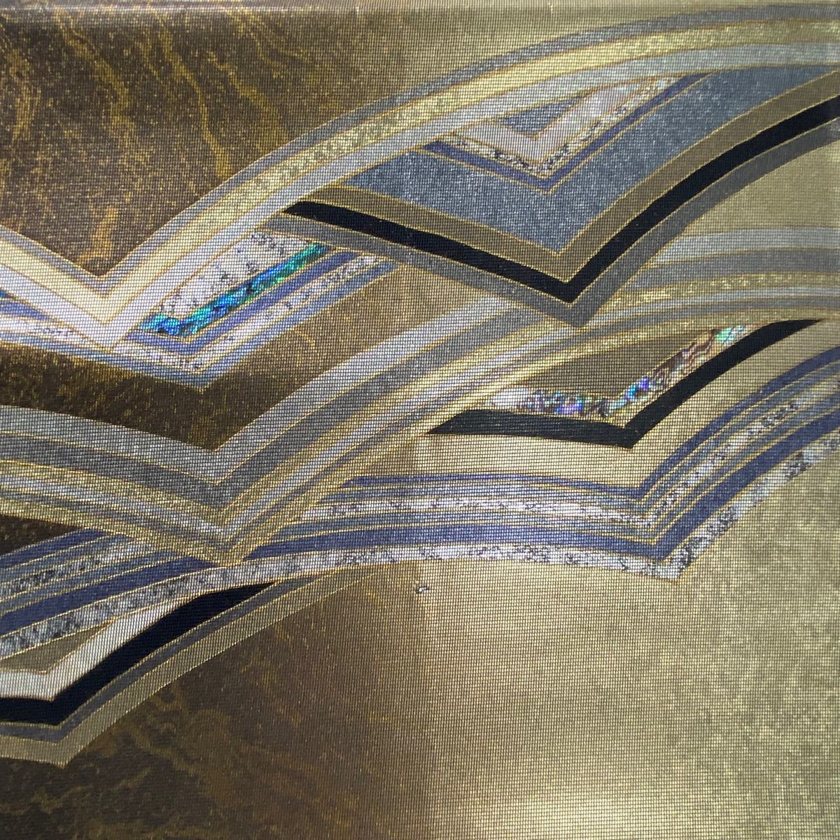 袋帯 落款 佐野正喜 波 箔 螺鈿箔 金色 お太鼓柄 正絹 WWW_GLOBALQUALITYIMPORTS_COM