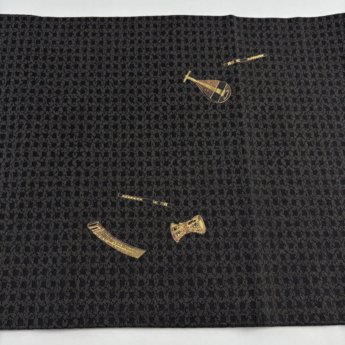 開き名古屋帯 秀品 和楽器 格子 螺鈿 金彩 墨色 正絹 WWW_GLOBALQUALITYIMPORTS_COM