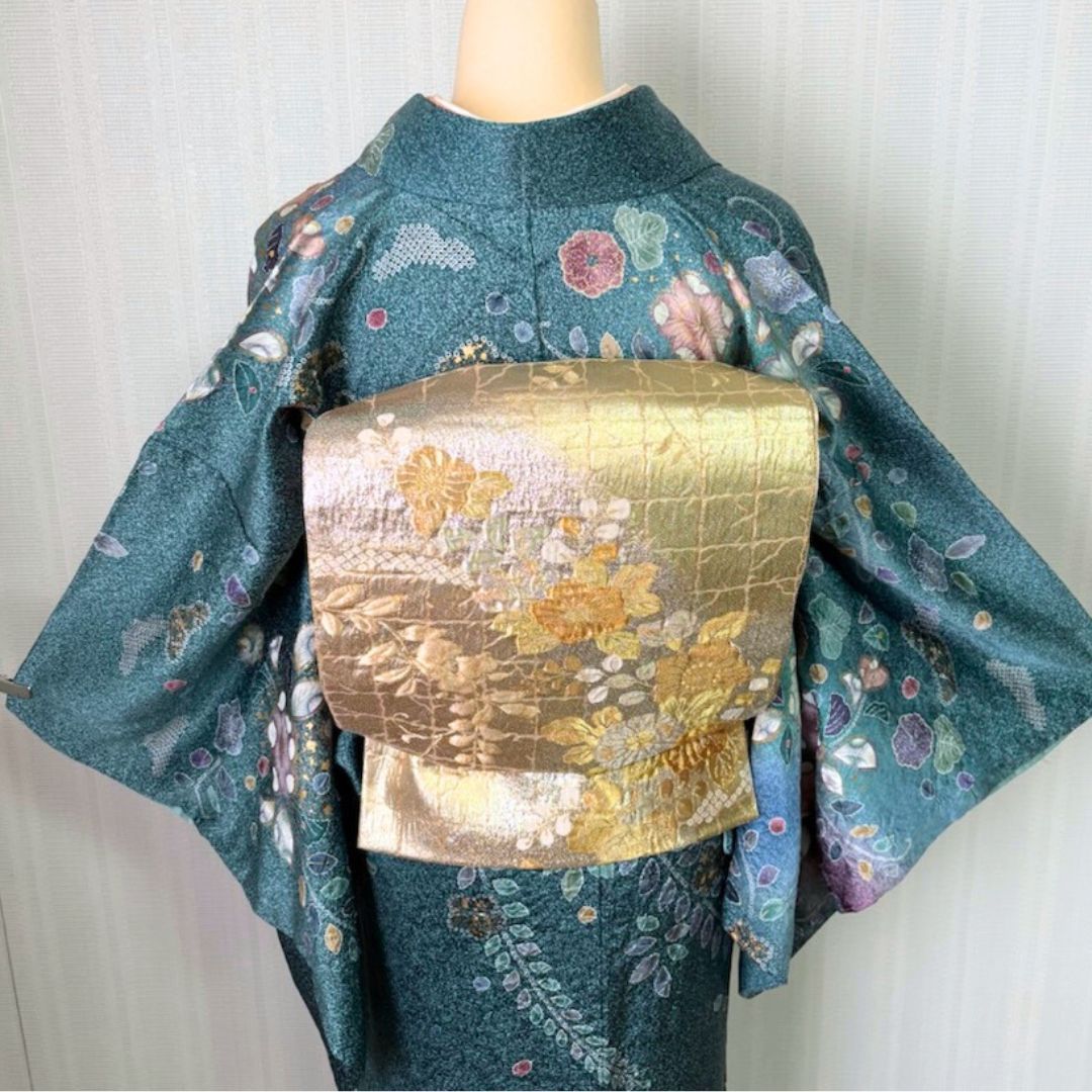 トールサイズ 辻が花 訪問着 フルセット 正絹 身丈167cm 裄67cm 袖丈56cm 青緑 グラデーション 辻ヶ花 訪問着セット 長襦袢 袋帯 帯揚げ 帯締め 重ね衿 上品 優雅 フォーマル 結婚式 入学式 卒業式 七五三 お茶会 春 秋 冬 WWW_GLOBALQUALITYIMPORTS_COM