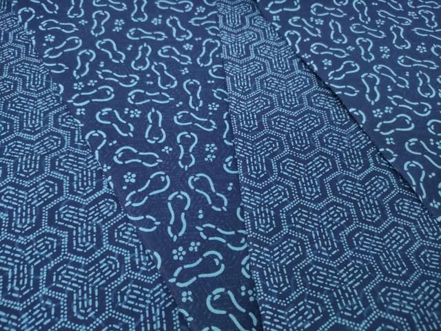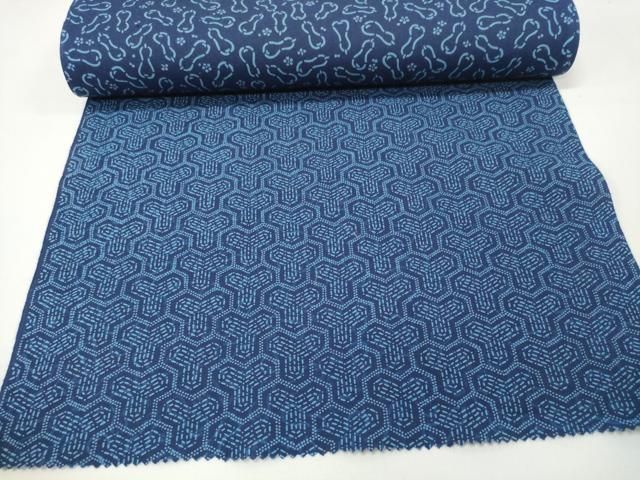 平和屋本店 夏物 竺仙鑑製 浴衣 反物 着尺 両面 籠染 正藍 瓢箪 毘沙門亀甲 証紙付き 綿 DZAA11299kh5 WWW_GLOBALQUALITYIMPORTS_COM