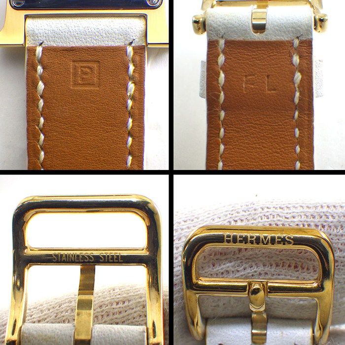 エルメス HERMES 腕時計 Hウォッチ HH1.201 スクエア オレンジ文字盤 GP SS ホワイト ヴォー エプソン レザーベルト クオーツアナログ WWW_GLOBALQUALITYIMPORTS_COM