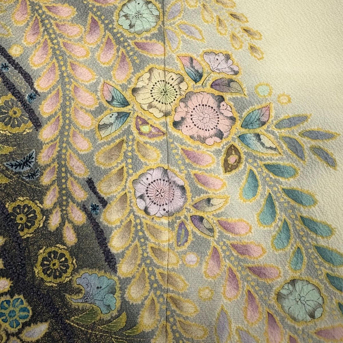 訪問着 身丈159.5cm 裄丈64cm M 袷 翠山工房 落款 辻が花 染め分け ぼかし クリーム 正絹 秀品 WWW_GLOBALQUALITYIMPORTS_COM