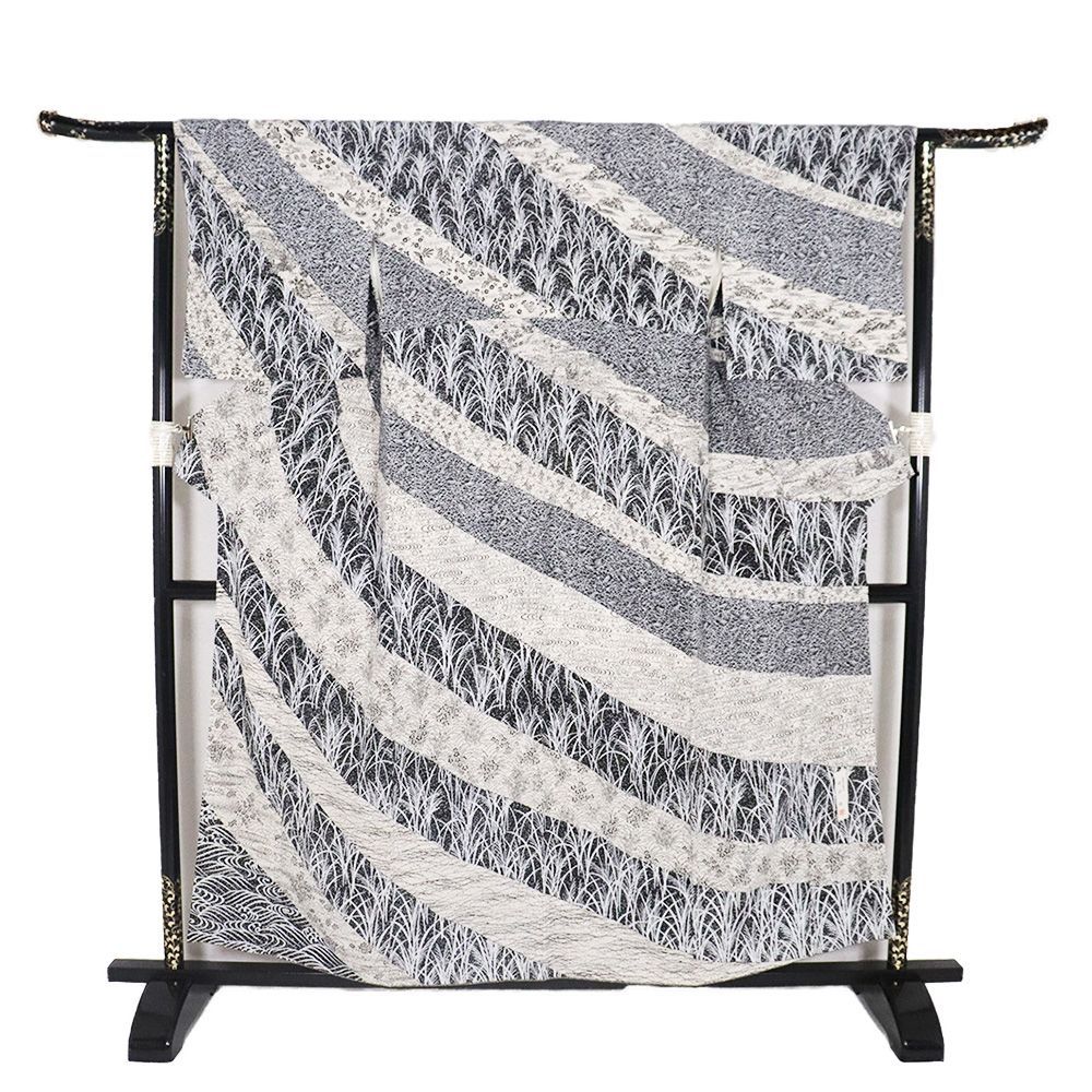 伝統工芸士 水谷滉氏作 訪問着 袷 正絹 黒 白 クリーム 熨斗文 草花 花喰鳥 菊 桔梗 桜 Mサイズ ki31092 フォーマル み WWW_GLOBALQUALITYIMPORTS_COM