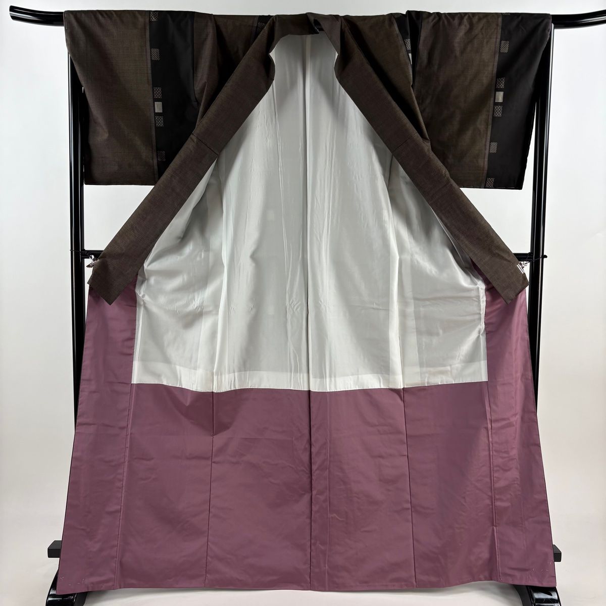 大島紬 身丈168cm 裄丈67cm M 袷 純泥染 縦縞 幾何学模様 灰茶 正絹 WWW_GLOBALQUALITYIMPORTS_COM