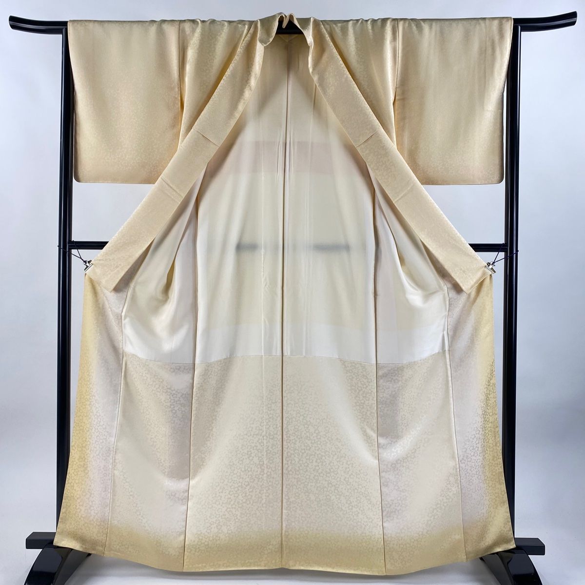 お召 身丈164.5cm 裄丈64.5cm M 袷 黄金糸きもの 証紙 地紋 薄黄 正絹 一つ紋 WWW_GLOBALQUALITYIMPORTS_COM