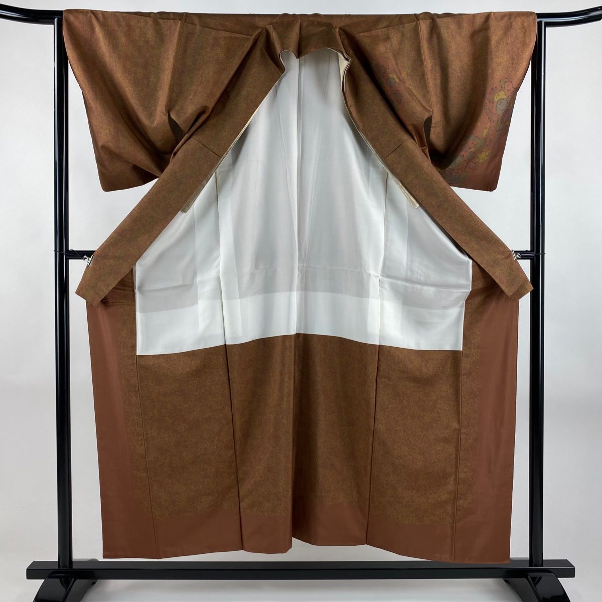 付下げ 身丈154.5cm 裄丈63.5cm S 袷 紬地 落款 辻が花柄 縦縞 赤茶 正絹 秀品の検索結果