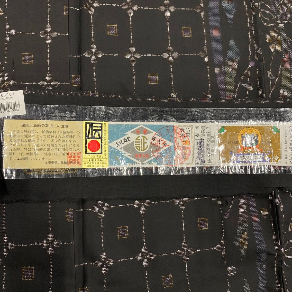大島紬 身丈163cm 裄丈68cm L 袷 純泥染 やまと 証紙 格子 桜 墨色 正絹 WWW_GLOBALQUALITYIMPORTS_COM