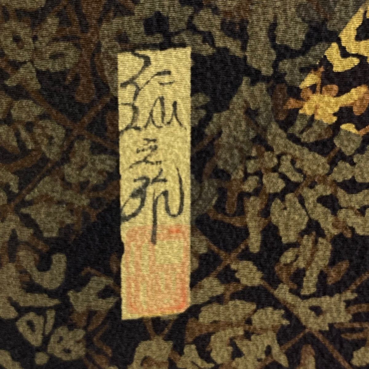 小紋 身丈158cm 裄丈66cm M 袷 前田仁仙 やまと 落款 草花 斜格子 黒 正絹 WWW_GLOBALQUALITYIMPORTS_COM